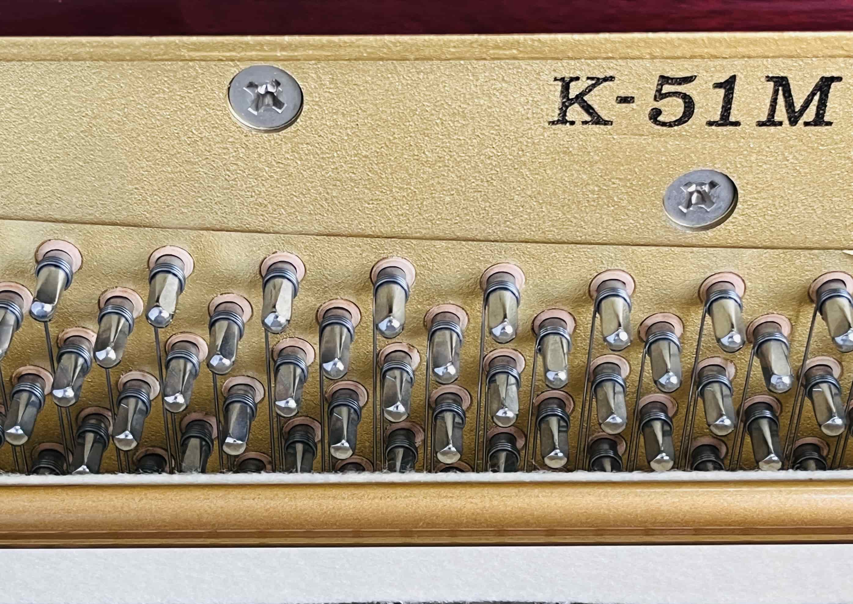 卡瓦依K-51M是日本原装进口的彩色立式钢琴,M代表Mahogany(桃花心木色),为木质外观涂装。属于K系列的高端型号,生产于2002年1月至2006年4月期间。琴键盖带缓降功能,分腿设计简约大方。